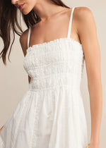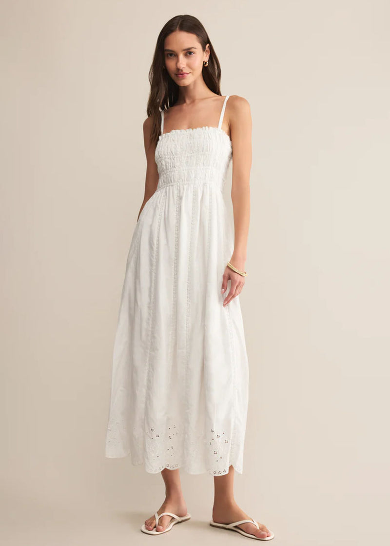 Delicate yet laid-back, this embroidered maxi is crafted from breezy 100% cotton with a relaxed fit and romantic lace insets. Adjustable spaghetti straps, a smocked bodice, and scalloped embroidery at the hem bring soft texture and all-day comfort, whether you're lounging or stepping out.