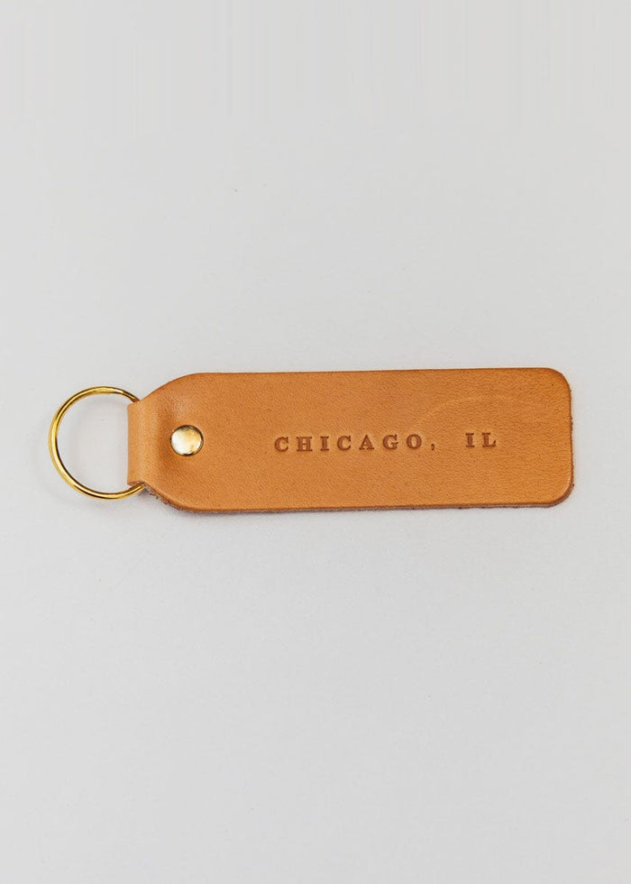 Hand Stamped Leather Keychain - Chicago, IL