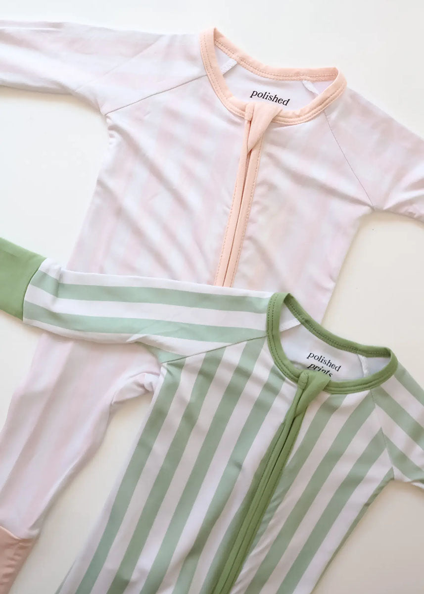 2-Way Zipper Footie - Vintage Spring Ducklings Green