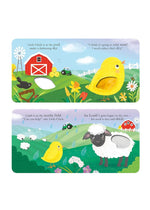 It's a beautiful spring day, and Little Chick is happy to be out in the yard. Suddenly, the sky darkens--it's going to rain! Little Chick needs to find a place to hide and stay dry, so she asks the other farm animals for help. But Lamb likes to be in the rain, Piglet's pen is too muddy, and the cows are much too loud! Where will Little Chick go? The book features simple rhyming text, bold and colorful artwork, a touch-and-feel die cut on the cover and throughout, as well as fun textures to explore, making this the perfect book for toddlers.
