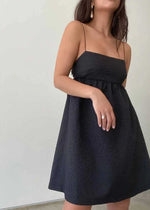 Back lace up tie babydoll mini dress with mini straps.